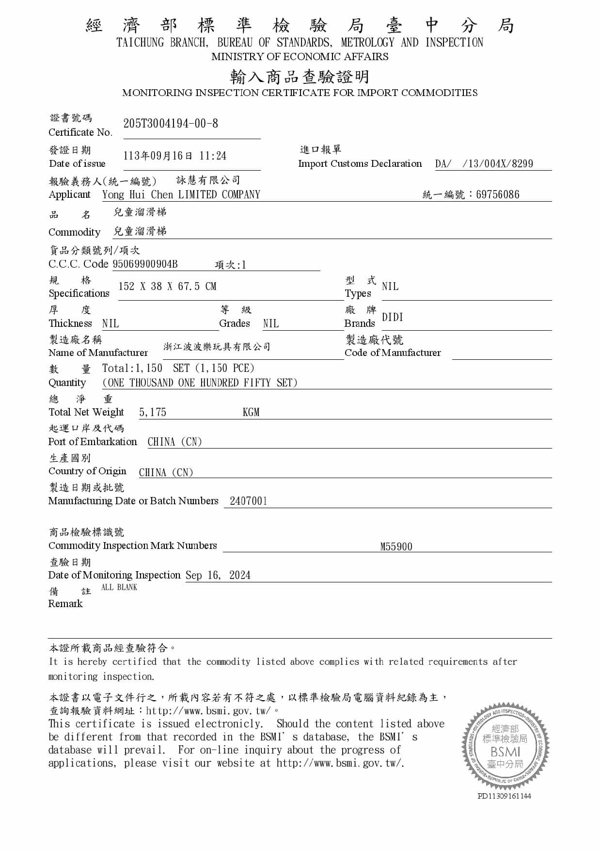 通過BSMI 檢驗合格,安全玩具,證書號碼205T0004316004。