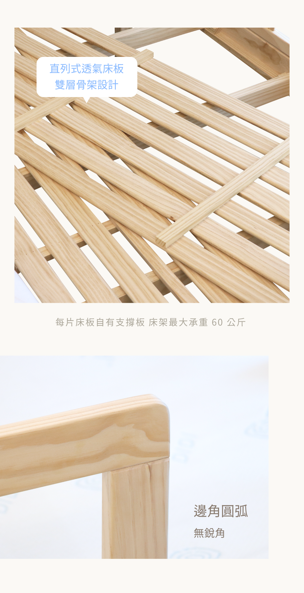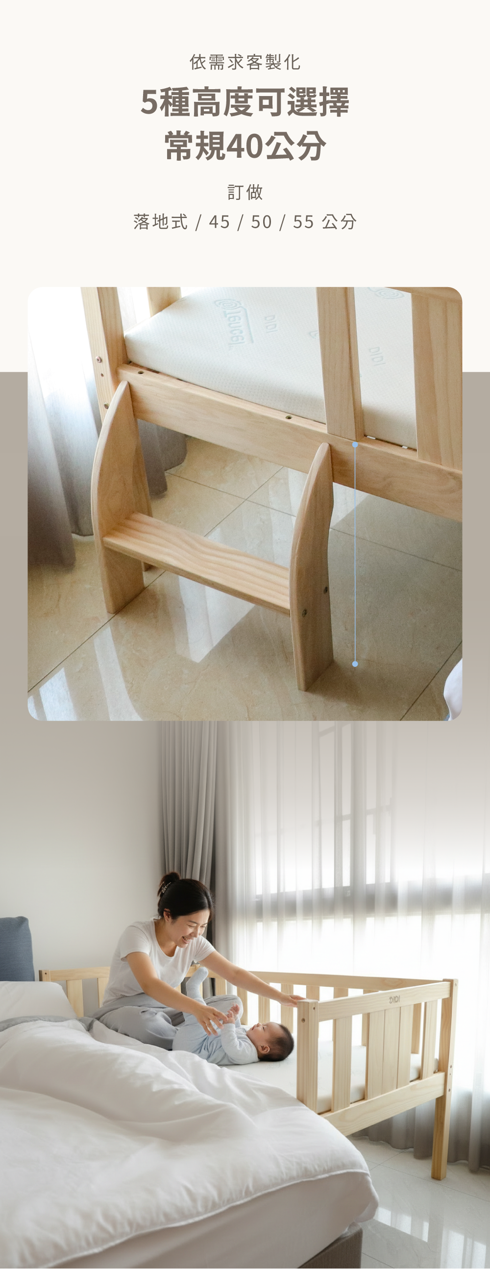 搭配 DIDI 系列床墊:床墊厚度 5 公分 + 高度 40 公分 = 床墊到地面 45 公分。