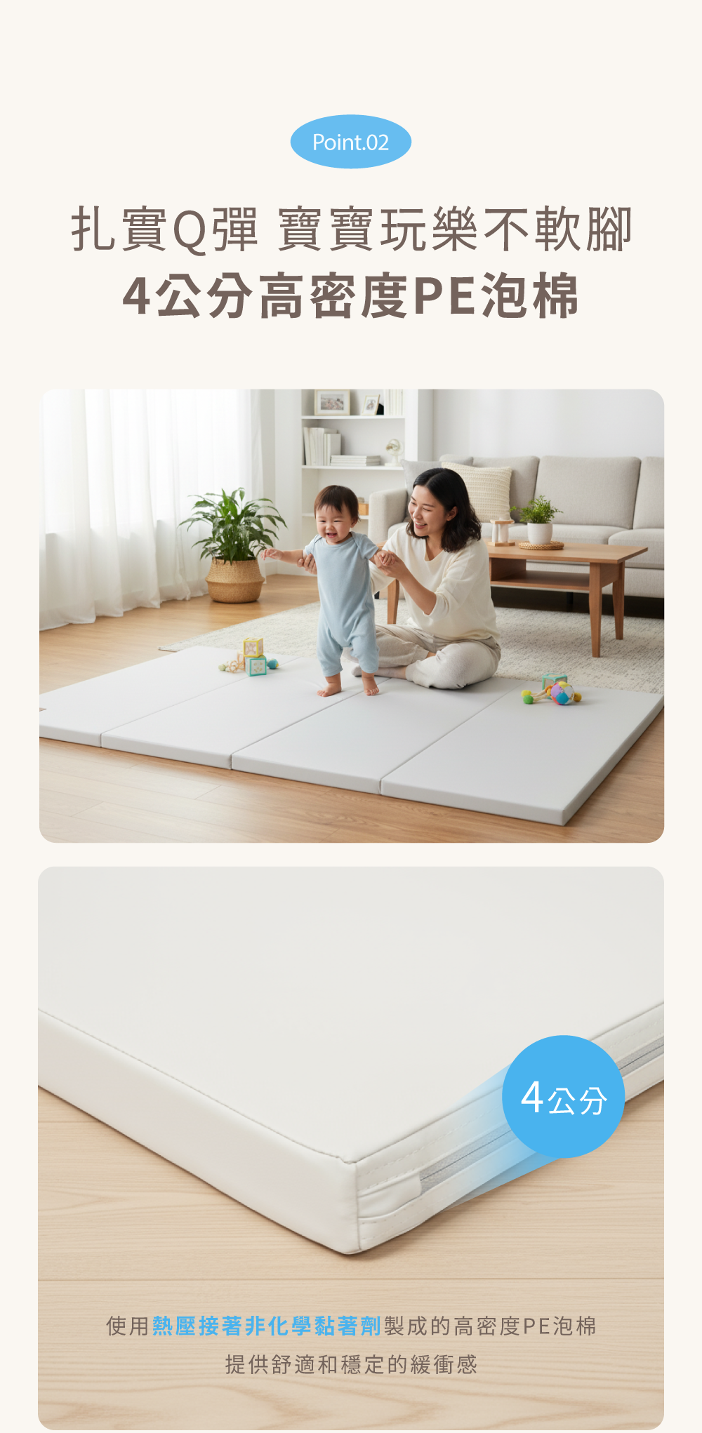 DIDI 是台灣第一個投入 PU 皮革遊戲地墊在地製造的品牌。我們規劃四折(台製)與五折(中製)兩種版本:
