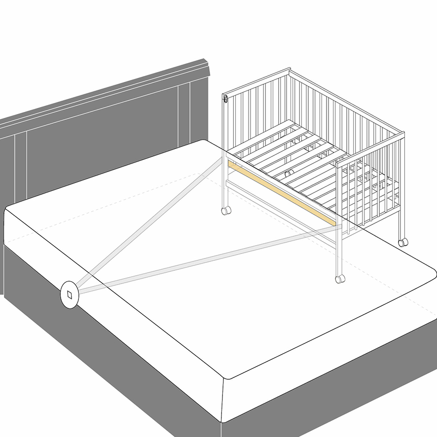 嬰兒床併床沒有靠牆固定,務必使用,避免嬰兒床位移產生縫隙。