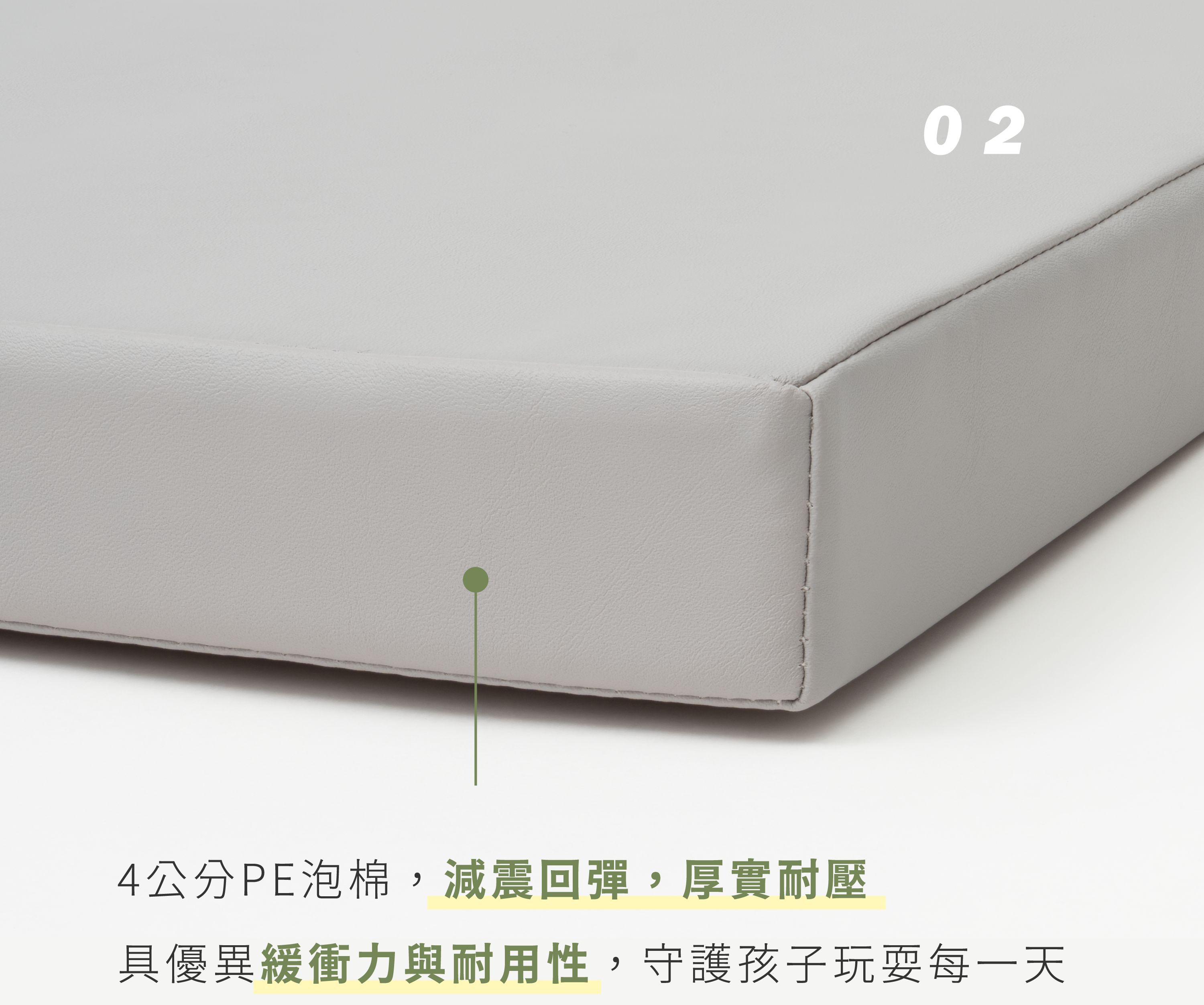 4 公分厚度地墊,提供優異緩衝與吸音效果,大幅減少噪音傳遞至樓下,安心又舒適。