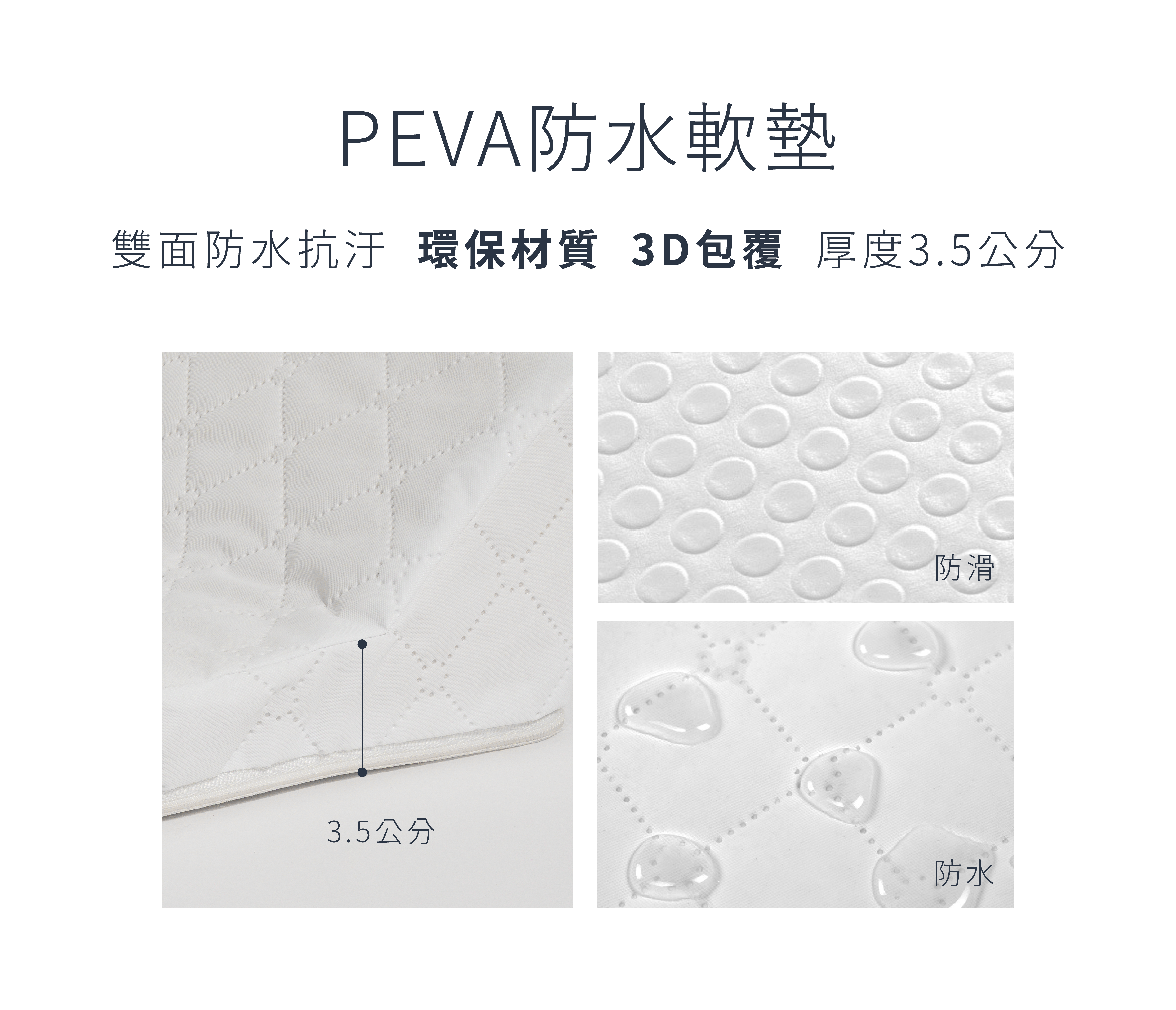 主要材質:複合防火軟棉 (PEVA)、不織布 (Nonwoven cloth)、內裡 100% 聚氨酯海棉 (PUR)