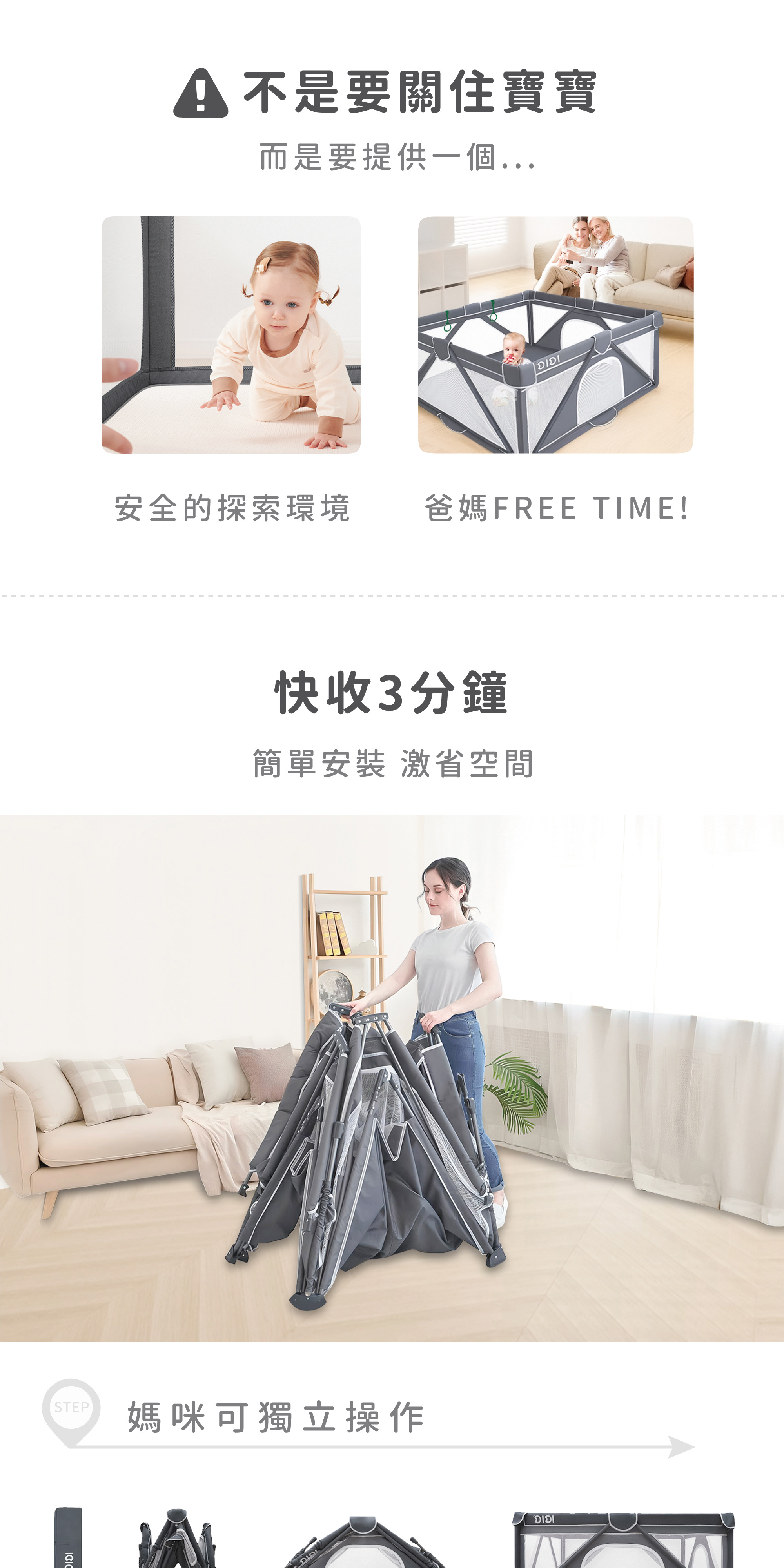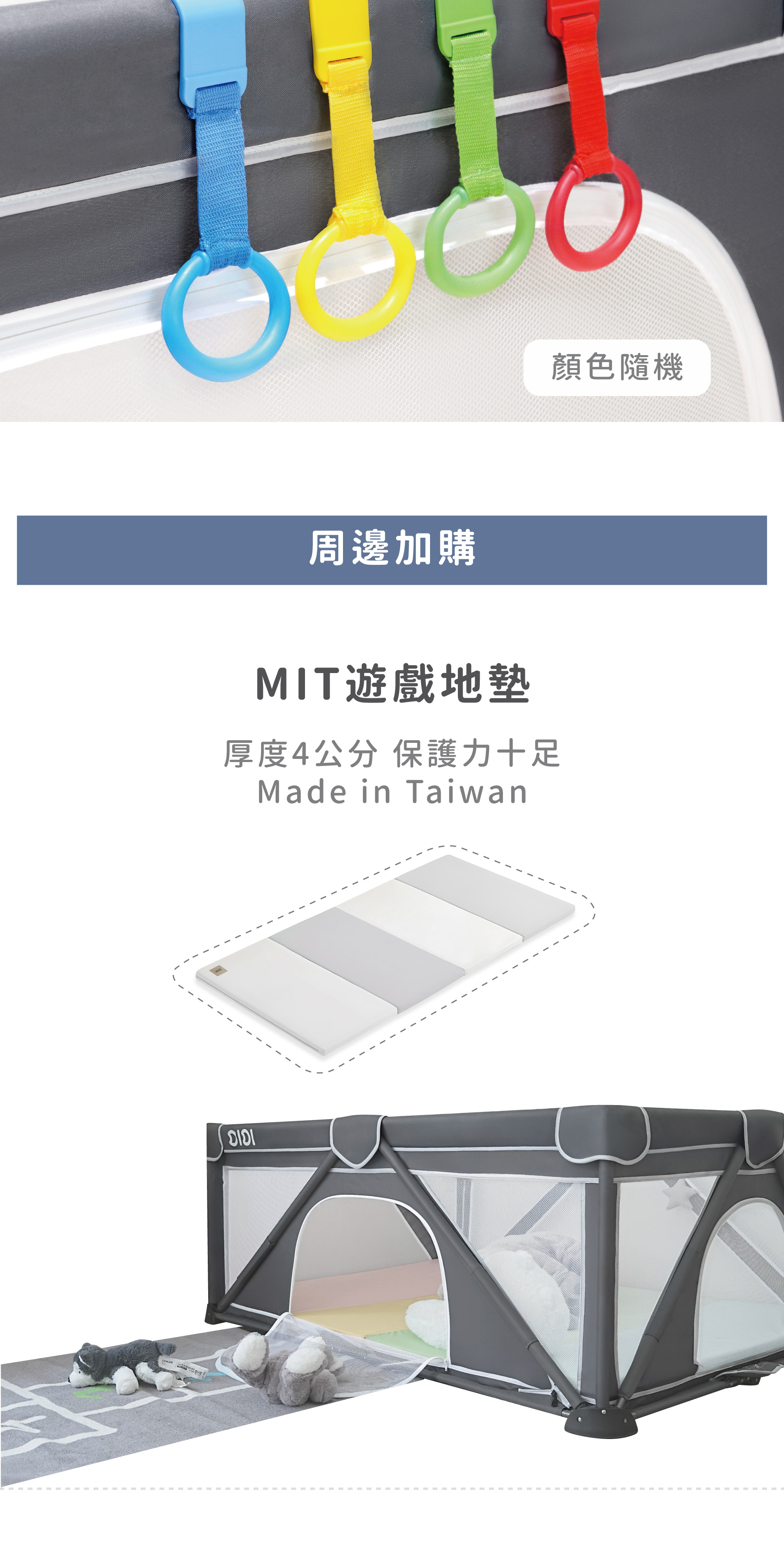 建議:長時間或定點使用時,建議搭配 DIDI MIT 遊戲地墊,可上下堆疊 1+1 使用,提供更佳緩衝保護。