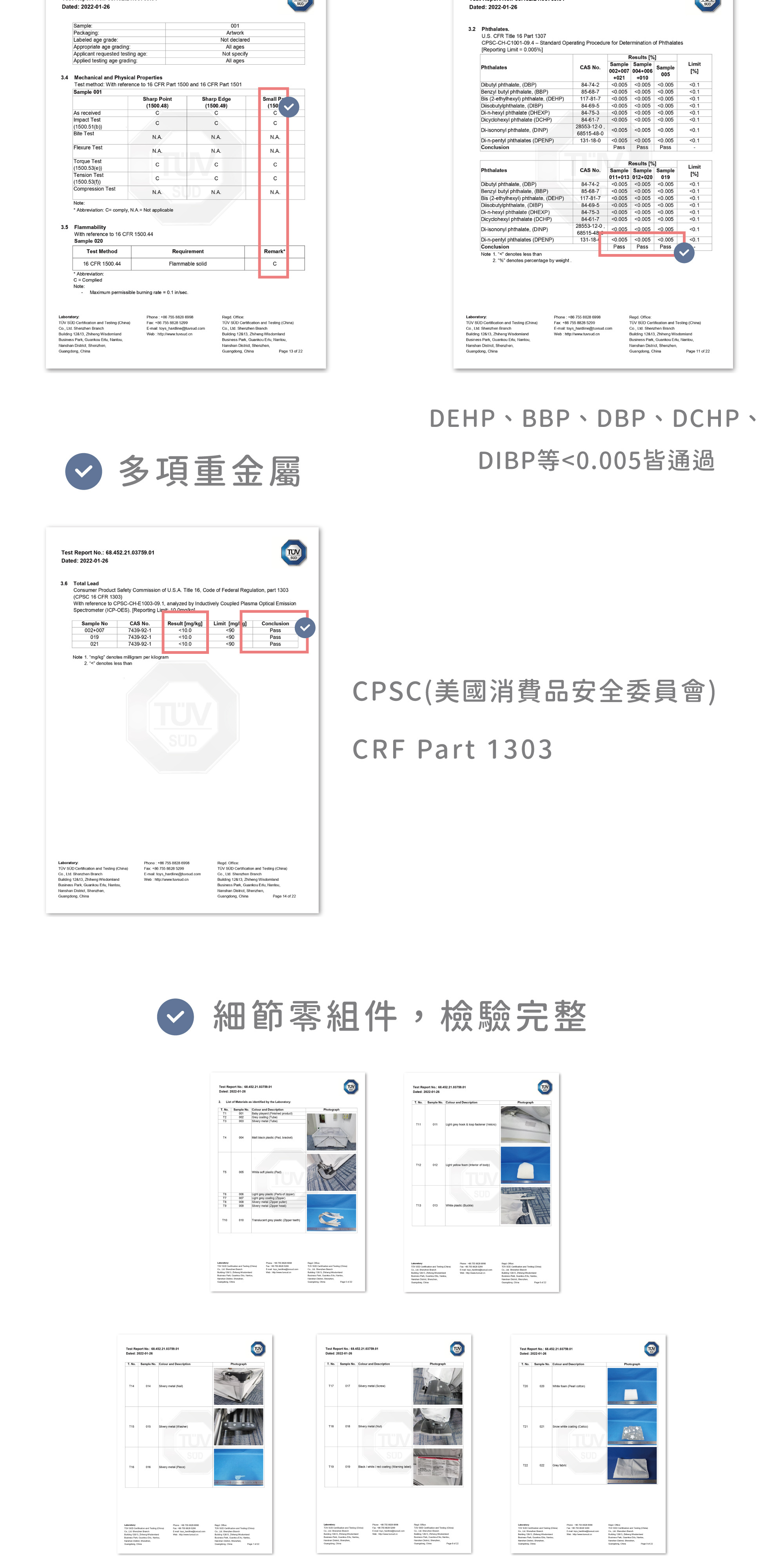 300D 聚酯纖維、防鏽金屬管件(酸洗磷化鐵)、海綿、泡綿、EVA 塑膠、食品級 PP(聚丙烯)