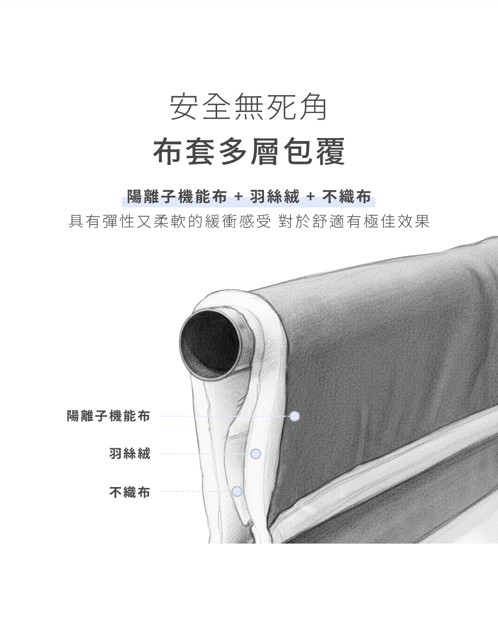 附贈的軟墊厚度為 2 公分,主要提供舒適性, 不具備防摔緩衝效果。