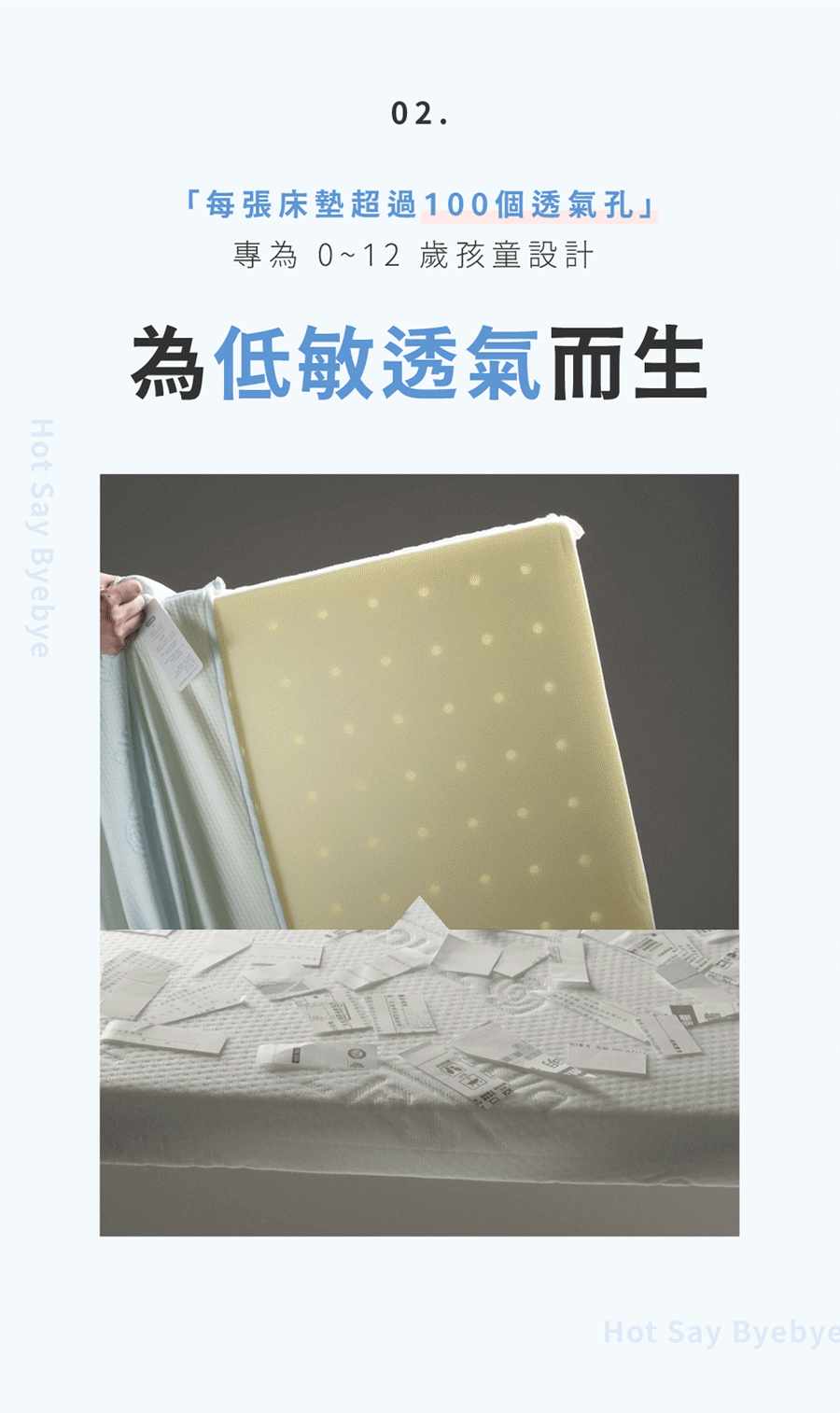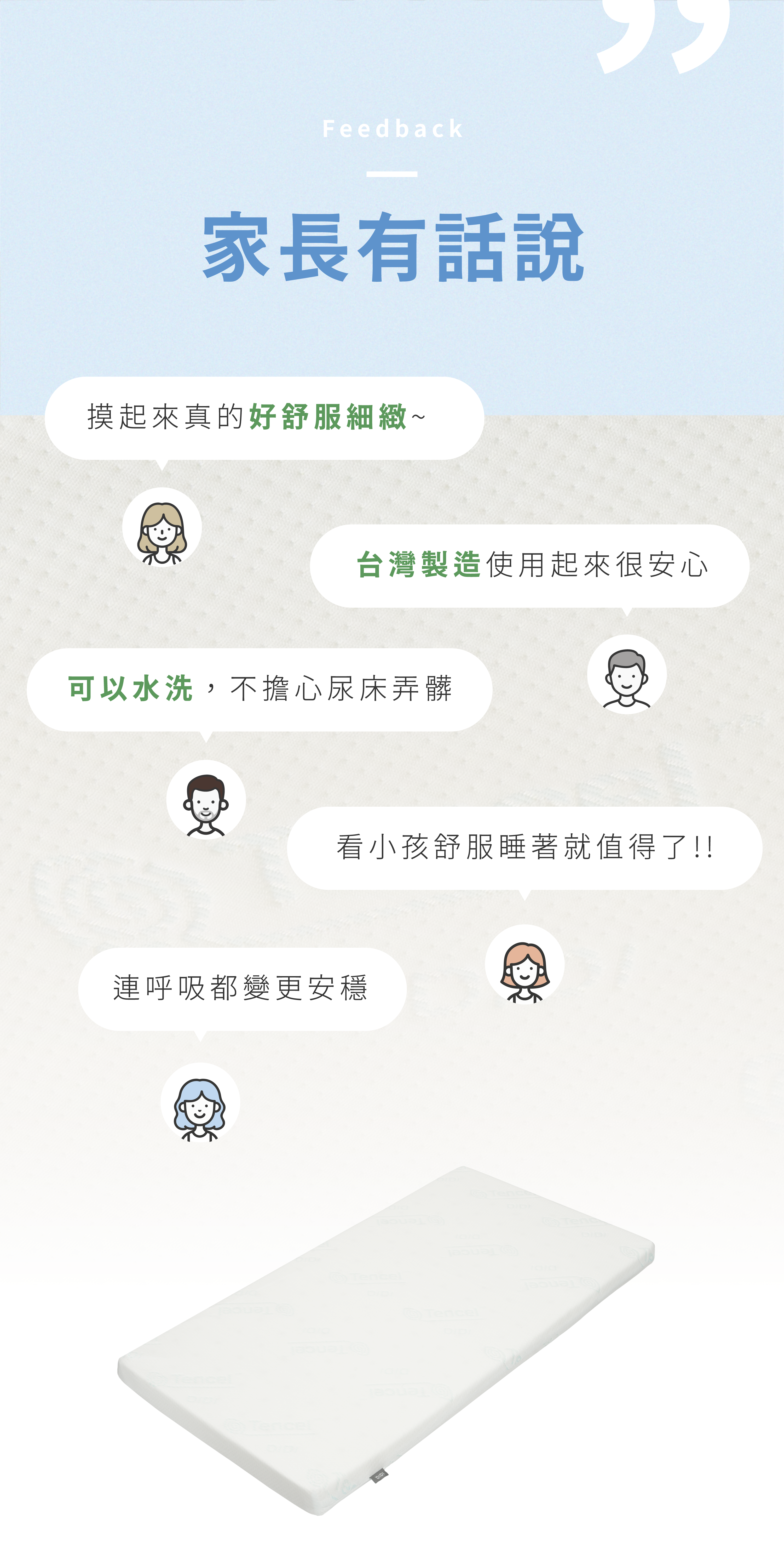 一定要透氣,床套最好使用親膚材質(原棉、天絲),有效降低肌膚摩擦導致紅癢。