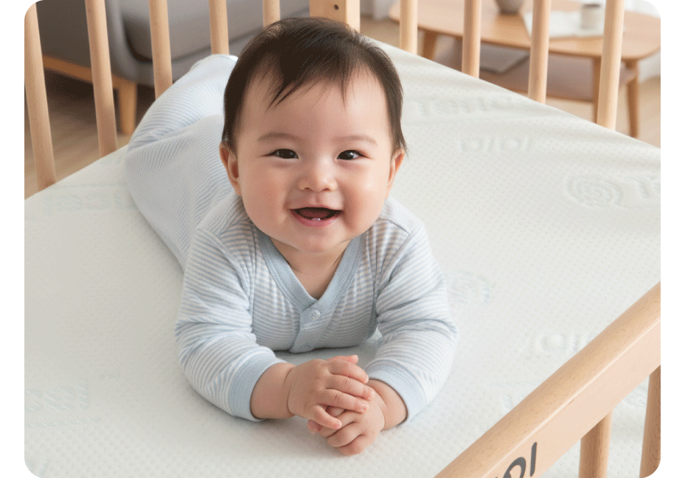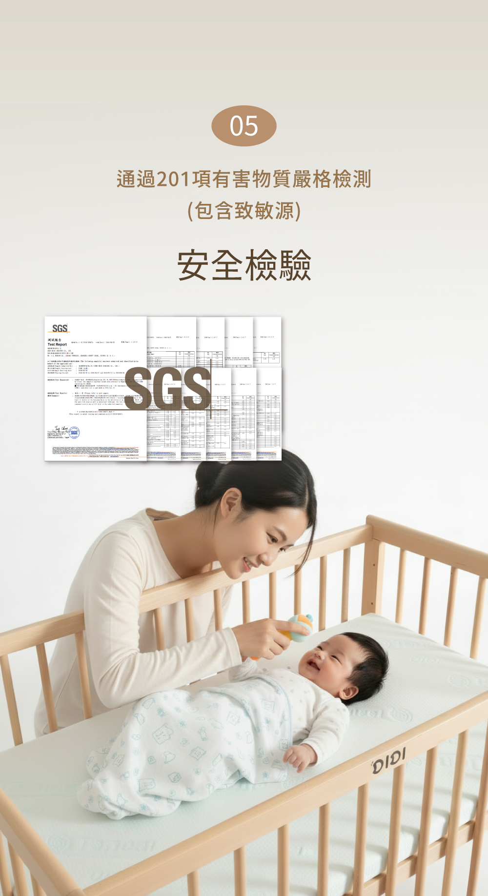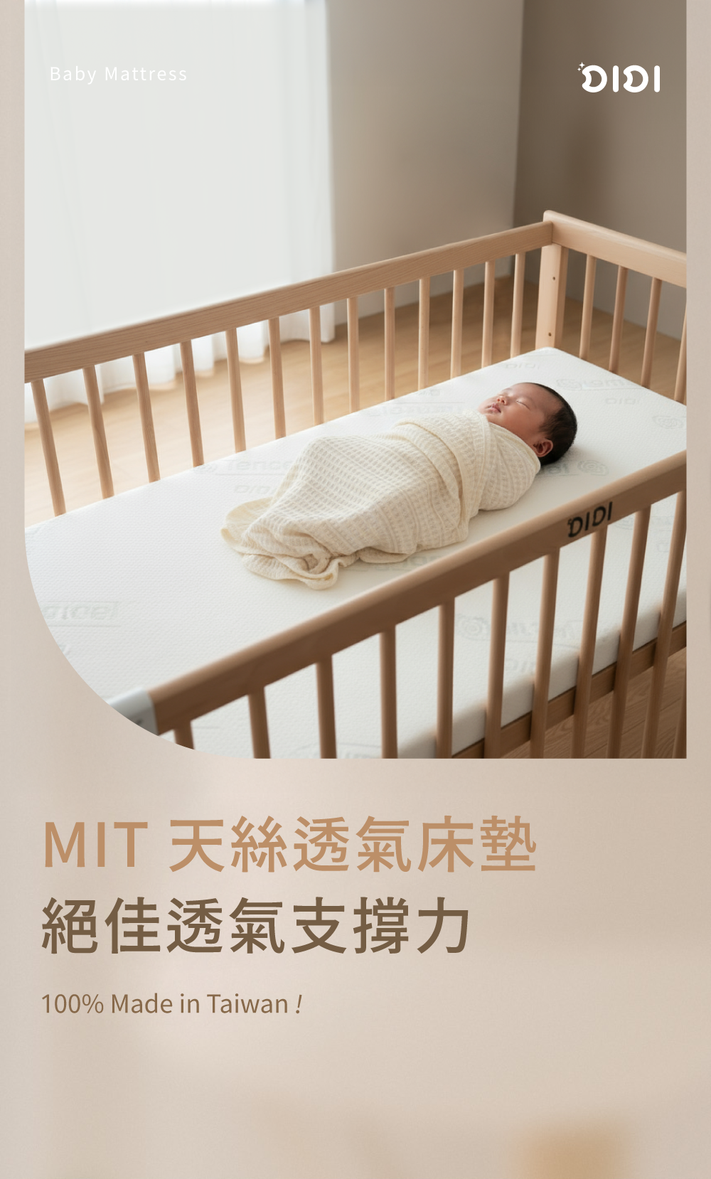 嬰幼兒床墊最重要的是 透氣性, 床套建議選擇親膚材質(原棉、天絲), 有助於降低肌膚摩擦造成的紅癢不適。