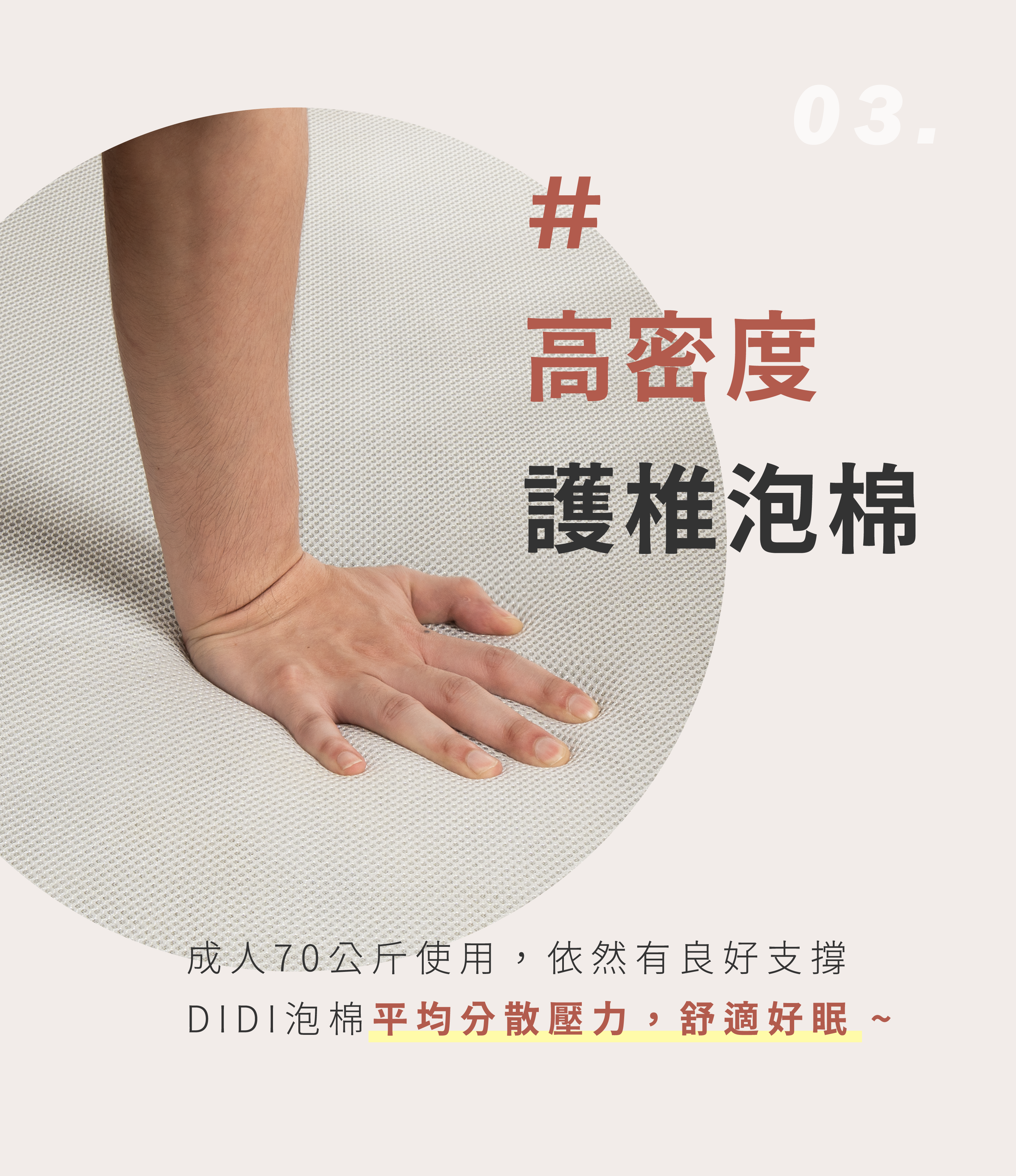 高密度護椎泡棉:局部手洗,自然晾乾,不可機洗,不可烘或曬,可以使用 60 ~ 65°C 高溫水殺菌除塵蟎。水洗後使用毛巾將多餘水分擠壓吸收後自然陰乾。